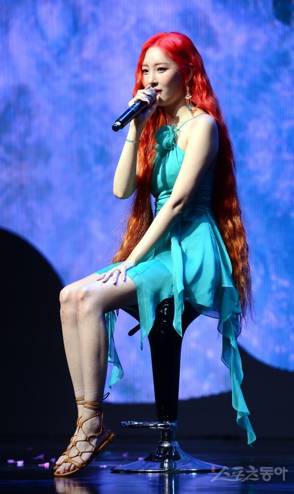 가수 선미가 29일 서울 마포구 신한play스퀘어에서 진행된 디지털 싱글 ‘열이올라요(Heart Burn)’ 발매 쇼케이스에서 취재진의 질문에 대답하고 있다.