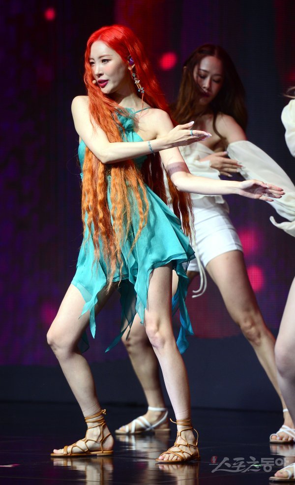가수 선미가 29일 서울 마포구 신한play스퀘어에서 진행된 디지털 싱글 ‘열이올라요(Heart Burn)’ 발매 쇼케이스에서 화려한 공연을 펼치고 있다.