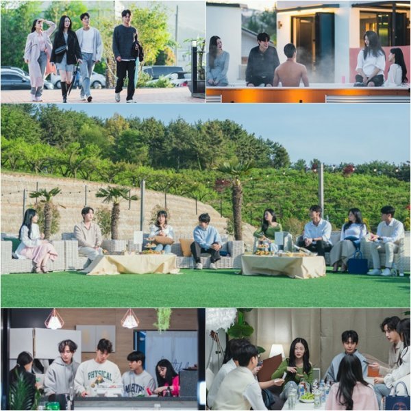 공개된 스틸에서 8인의 남사친, 여사친은 푸르른 잔디밭 위에 살짝 거리를 두고 앉아 설렘 가득한 표정을 지어보였다. 이들은 삼삼오오 짝을 지어 야외 데이트를 즐기는가 하면, 숙소 내에 마련되어 있는 스파와 수영장에서 휴식을 취하면서 묘한 핑크빛 기류를 발산했다.