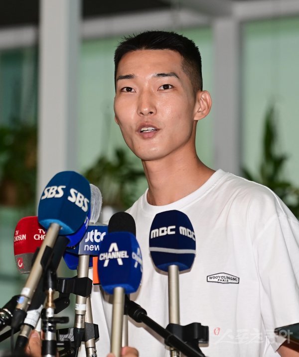육상 높이뛰기 국가대표 우상혁이 ‘2022 오리건 세계육상선수권대회’에 출전하기 위해 30일 인천국제공항 2터미널에서 출국 인터뷰를 하고 있다.