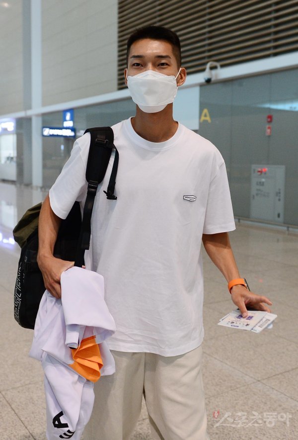 육상 높이뛰기 국가대표 우상혁이 ‘2022 오리건 세계육상선수권대회’에 출전하기 위해 30일 인천국제공항 2터미널에서 출국 인터뷰를 마친 후 출국장으로 향하고 있다.