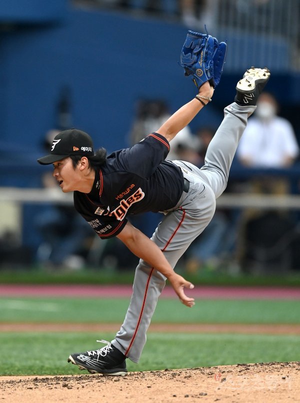3일 서울 고척스카이돔에서 ‘2022 신한은행 MY CAR KBO리그’ 한화이글스와 키움 히어로즈 경기가 열렸다. 교체 등판한 한화 윤산흠이 역투하고 있다.