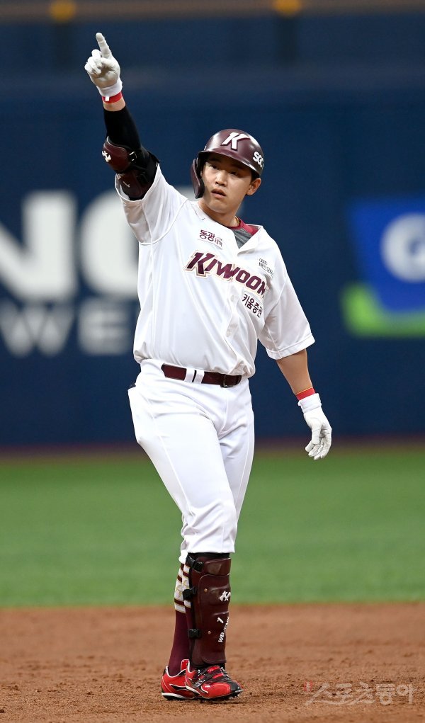 3일 서울 고척스카이돔에서 ‘2022 신한은행 MY CAR KBO리그’ 한화이글스와 키움 히어로즈 경기가 열렸다. 2회말 2사 2,3루 키움 김웅빈이 역전 2타점 좌전 2루타를 치고 2루에서 기뻐하고 있다.