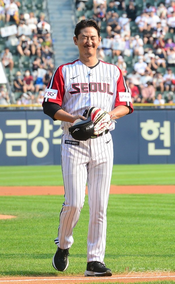 3일 서울 잠실야구장에서 열린 ‘2022 신한은행 SOL KBO리그’ LG 트윈스와 롯데 자이언츠의 경기에 앞서 박용택이 특별 라인업에서 교체되며 아쉬워하고 있다.