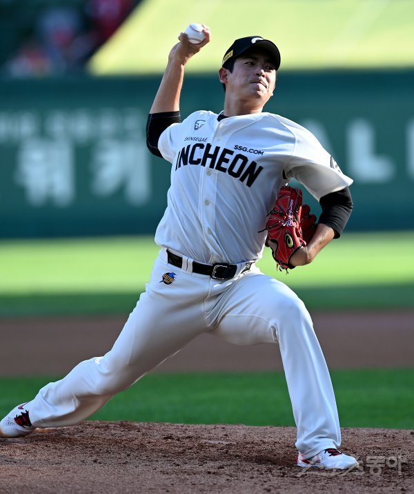 3일 인천 SSG 랜더스필드에서 ‘2022 신한은행 SOL KBO리그’ SSG 랜더스와 KIA 타이거즈의 경기가 열렸다. SSG 선발투수 이태양이 힘차게 볼을 던지고 있다.