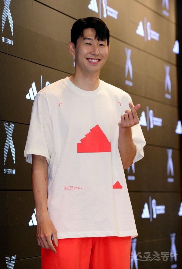 4일 서울 아디다스 홍대 브랜드센터에서 EPL 개인 커리어 하이를 기록한 손흥민이 참석한 ‘손 커밍 데이’ 행사가 열렸다. 손흥민이 카메라를 향해 포즈를 취하고 있다.