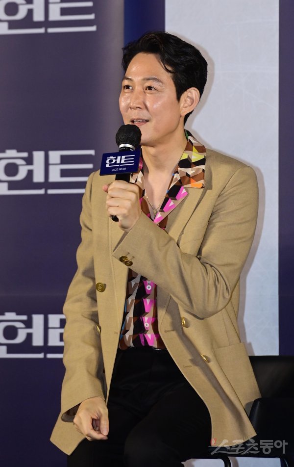 감독 겸 배우 이정재가 5일 서울 성동구 성수동 메가박스 성수점에서 열린 영화 ‘헌트’ 제작보고회에서 인사말을 하고 있다.
