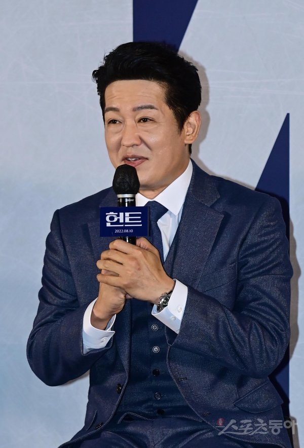 배우 허성태가 5일 서울 성동구 성수동 메가박스 성수점에서 열린 영화 ‘헌트’ 제작보고회에서 인사말을 하고 있다.