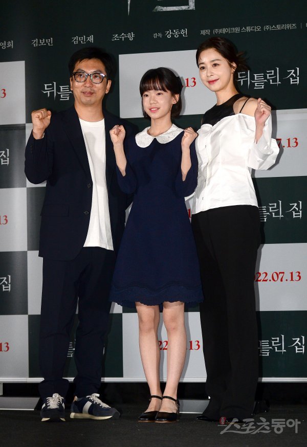 5일 서울 CGV용산에서 열린 영화 ‘뒤틀린 집’ 시사회에서 강동헌 감독, 배우 서영희, 김보민이 포토타임을 갖고 있다.
