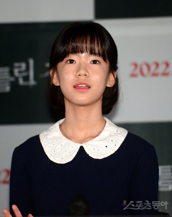 5일 서울 CGV용산에서 열린 영화 ‘뒤틀린 집’ 시사회에서 배우 김보민이 취재진의 질문에 대답하고 있다.
