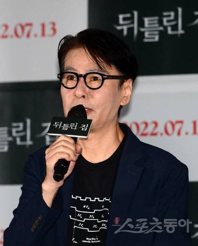 5일 서울 CGV용산에서 열린 영화 ‘뒤틀린 집’ 시사회에서 윤상 음악감독이 취재진의 질문에 대답하고 있다.