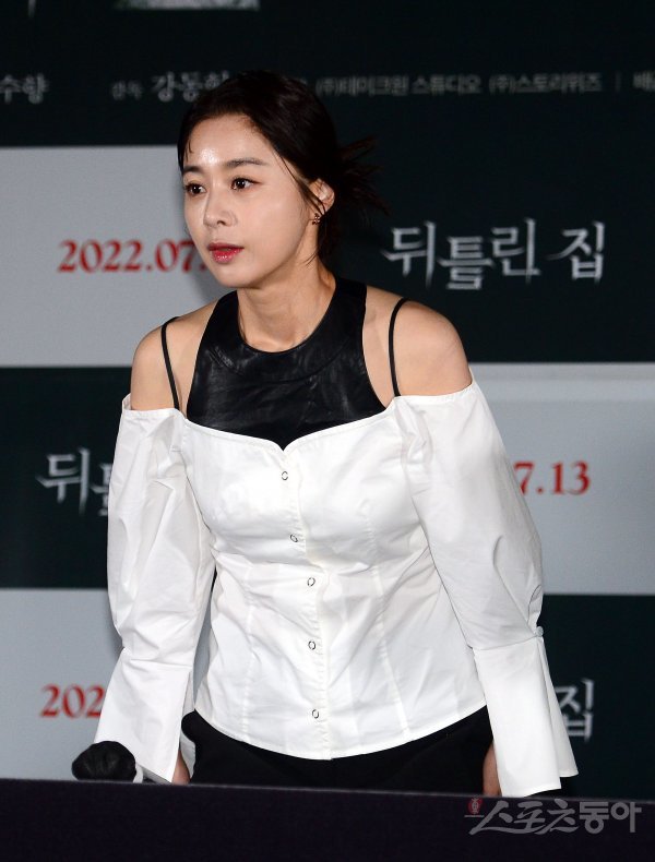 5일 서울 CGV용산에서 열린 영화 ‘뒤틀린 집’ 시사회에서 배우 서영희가 자리에 앉고 있다 있다.