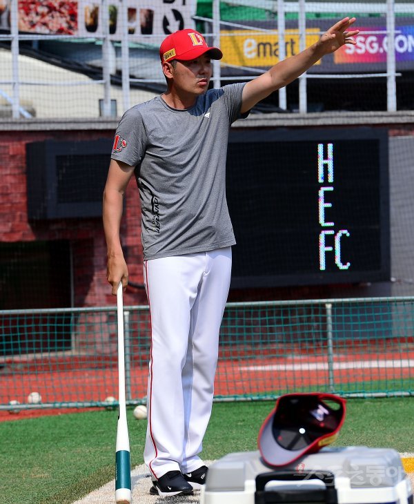 5일 인천 SSG 랜더스필드에서 ‘2022 신한은행 SOL KBO리그’ SSG 랜더스와 롯데 자이언츠의 경기가 열린다. 경기 전 SSG 김원형 감독이 선수들의 훈련을 지시하고 있다.