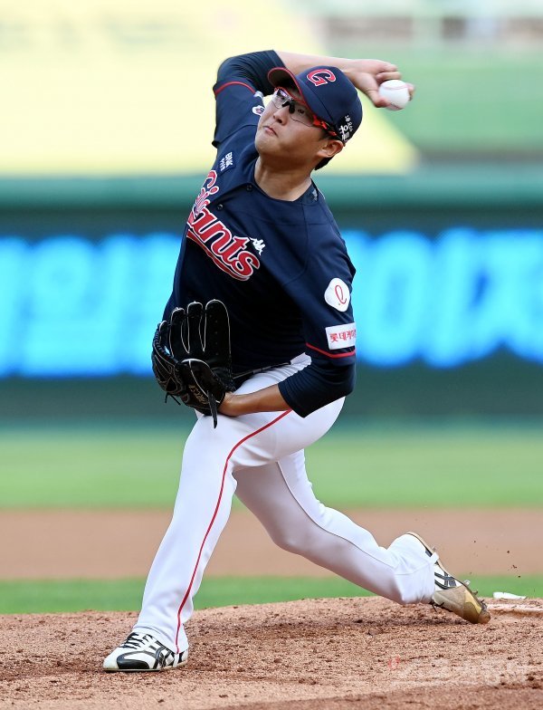 5일 인천 SSG 랜더스필드에서 ‘2022 신한은행 SOL KBO리그’ SSG 랜더스와 롯데 자이언츠의 경기가 열렸다. 롯데 선발투수 박세웅이 힘차게 볼을 던지고 있다.
