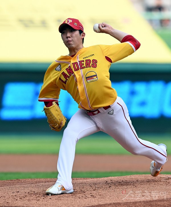 5일 인천 SSG 랜더스필드에서 ‘2022 신한은행 SOL KBO리그’ SSG 랜더스와 롯데 자이언츠의 경기가 열렸다. SSG 선발투수 오원석이 힘차게 볼을 던지고 있다.