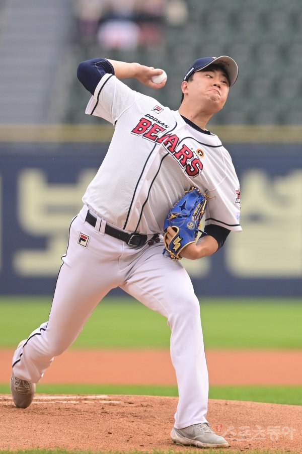 5일 서울 잠실야구장에서 열린 ‘2022 신한은행 SOL KBO리그’ 두산 베어스와 키움 히어로즈의 경기에서 선발 투수로 마운드에 오른 두산 이영하가 역투하고 있다.