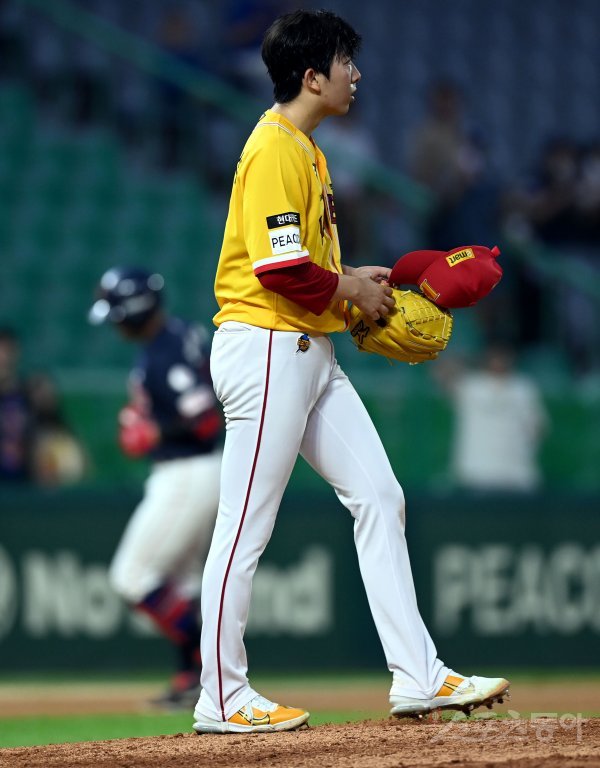 5일 인천 SSG 랜더스필드에서 ‘2022 신한은행 SOL KBO리그’ SSG 랜더스와 롯데 자이언츠의 경기가 열렸다. 6회초 무사 1루에서 역전 홈런을 허용한 SSG 선발 오원석이 아쉬워하고 있다.