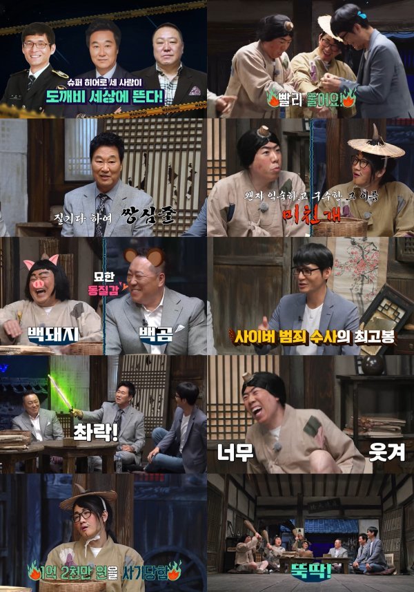 이날 국립중앙경찰학교 교수 김복준, 대한민국 1호 탐정 김수환, 사이버 범죄 수사관 박중현은 남다른 비주얼과 상대방을 압도하는 피지컬, 여유 넘치는 태도로 등장부터 도깨비들을 긴장하게 했다. 특히 박중현 수사관이 수갑을 꺼내 들자 ‘양깨비’ 양세찬과 ‘용깨비’ 이용진은 겁도 없이 나섰다가 수갑이 채워지는 수모를 겪었다.