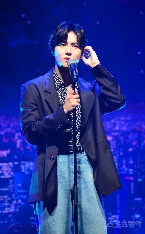 1980년대 가요계를 이끈 록 밴드 송골매가 40년 만에 뭉쳐 추석 연휴 기간 서울 송파구 올림픽공원 KSPO돔에서 ‘열망’(熱望)’ 전국 투어 콘서트를 개최한다. 6일 서울 마포구 신한play스퀘어에서 진행된 <2022 송골매 전구 투어 콘서트:‘열망’(熱望)’>제작발표회에서 음원 포로젝트에 참가한 엑소 수호가 공연을 펼치고 있다.