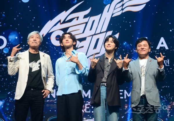 1980년대 가요계를 이끈 록 밴드 송골매가 40년 만에 뭉쳐 추석 연휴 기간 서울 송파구 올림픽공원 KSPO돔에서 ‘열망’(熱望)’ 전국 투어 콘서트를 개최한다. 6일 서울 마포구 신한play스퀘어에서 진행된 <2022 송골매 전구 투어 콘서트:‘열망’(熱望)’>제작발표회에서 배철수, 구창모와 음원 포로젝트에 참가한 엑소 수호, 잔나비가 포토타임을 갖고 있다.