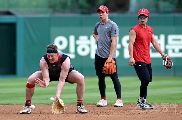 6일 인천 SSG 랜더스필드에서 ‘2022 신한은행 SOL KBO리그’ SSG 랜더스와 롯데 자이언츠의 경기가 열린다. 경기 전 SSG 크론이 유격수 수비 훈련을 하고 있다.