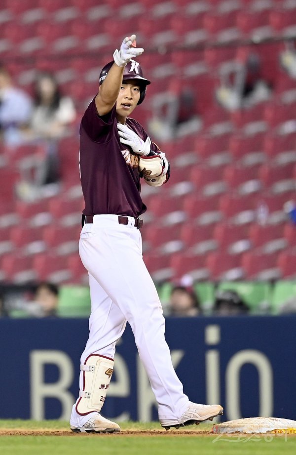 6일 서울 잠실야구장에서 ‘2022 신한은행 MY CAR KBO리그‘ 키움 히어로즈와 두산 베어스 경기가 열렸다. 6회초 2사 1,2루 키움 김휘집이 1타점 적시타를 치고 있다.