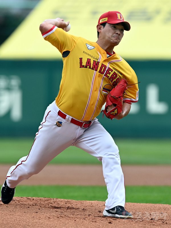 6일 인천 SSG 랜더스필드에서 ‘2022 신한은행 SOL KBO리그’ SSG 랜더스와 롯데 자이언츠의 경기가 열렸다. SSG 선발투수 노경은이 힘차게 볼을 던지고 있다.