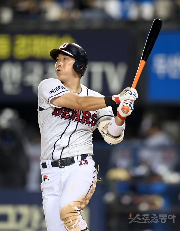 6일 서울 잠실야구장에서 ‘2022 신한은행 MY CAR KBO리그’ 키움 히어로즈와 두산 베어스 경기가 열렸다. 7회말 1사 만루 두산 허경민이 역전 좌월 만루 홈런을 날리고 있다.