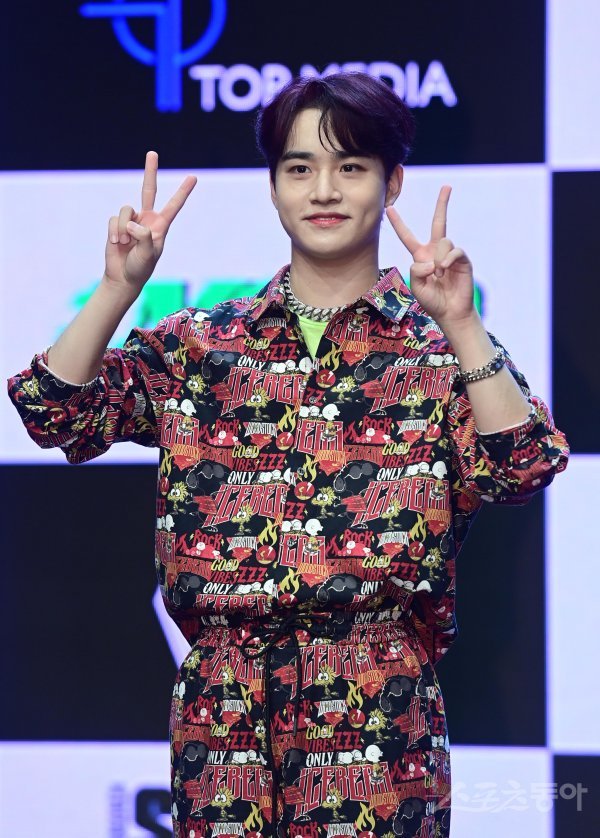 그룹 MCND 빅이 7일 서울 강남구 청담동 일지아트홀에서 열린 네 번째 미니앨범 ‘THE EARTH: SECRET MISSON Chapter. 2‘ 발매 기념 프레스 쇼케이스에서 포즈를 취하고 있다.