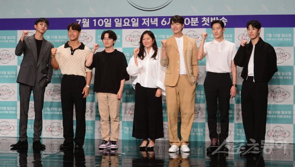 7일 서울 마포구 상암MBC에서 열린 MBC 신규 예능 ‘도포자락 휘날리며’ 제작발표회에서 주우재, 김종국, 김윤집 PD, 황지연 PD, 지현우, 노상현, 황대헌이 포토타임을 갖고 있다.