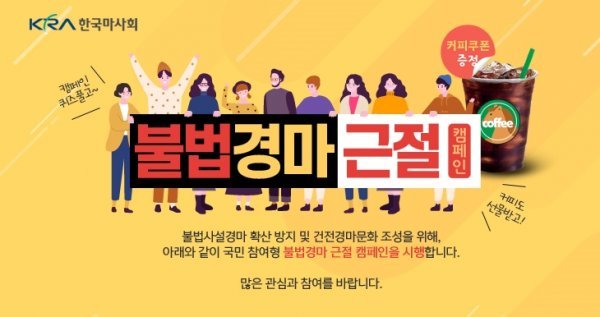 한국마사회는 불법사설경마 확산 방지 및 건전 경마문화 조성을 위해 10월까지 국민 참여형 불법경마 근절 캠페인을 시행한다. 캠페인을 통해 불법경마의 심각성과 폐해에 대한 국민들의 경각심을 고취하는 데 집중할 예정이다. 7월 한 달은 불법경마 근절 OX퀴즈 이벤트를 실시한다. 8월에는 불법경마 근절 가로세로 퀴즈, 9월에는 불법경마 근절 초성퀴즈, 10월에는 마사회 삼행시 짓기 등 참여자에게 재미와 흥미를 선사할 콘텐츠를 운영한다.