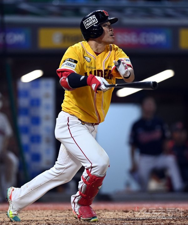 7일 인천 SSG 랜더스필드에서 ‘2022 신한은행 SOL KBO리그’ SSG 랜더스와 롯데 자이언츠의 경기가 열렸다. 6회말 2사 1, 2루에서 SSG 한유섬이 3점 홈런을 쏘아 올리고 있다.