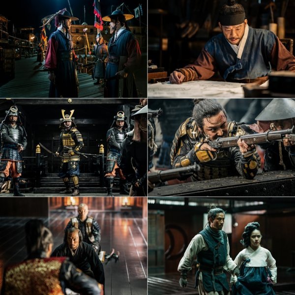 강렬한 카리스마를 선보이며 승리를 확신하고 있는 왜군 최고 장수 ‘와키자카’ 역의 변요한의 모습도 인상적이다. ‘와키자카’ 앞에 충성심을 보이는 ‘준사’ 역의 김성규와 ‘와키자카’와 대립 관계의 라이벌 ‘가토’ 역 김성균의 모습이 공개되어 왜군 진영의 흥미로운 이야기도 예고한다. 이어 기녀로 잠입한 첩자 ‘정보름’ 역의 김향기와 탐망꾼 ‘임준영’ 역의 옥택연이 왜 함께 있는지, 이들이 왜군 측에서 어떤 역할을 하게 될지 궁금증을 자극한다.