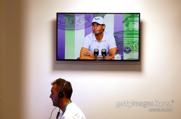 기자회견을 열어 윔블던 4강 출전 포기를 밝힌 라파엘 나달. 사진=게티이미지코리아.