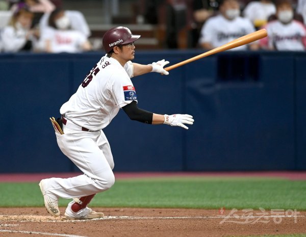 10일 서울 고척스카이돔에서 ‘2022 신한은행 MY CAR KBO리그’ NC 다이노스와 키움 히어로즈가 경기가 열렸다. 6회말 1사 1,2루 키움 이지영이 선제 1타점 적시타를 치고 있다.