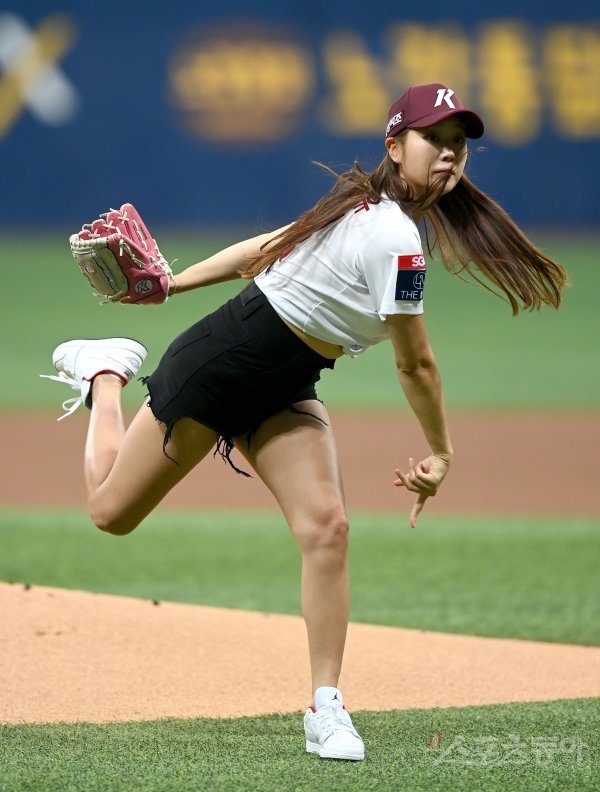 10일 서울 고척스카이돔에서 ‘2022 신한은행 MY CAR KBO리그’ NC 다이노스와 키움 히어로즈가 경기가 열렸다. 경기 전 가수 소유가 시구를 하고 있다.