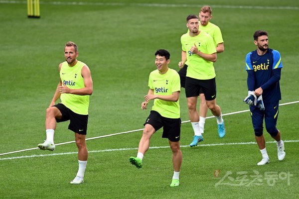 손흥민의 소속팀 토트넘이 11일 서울월드컵경기장에서 오픈 트레이닝을 가졌다. 토트넘 손흥민과 케인이 가볍게 몸을 풀고 있다. 상암 | 김민성 기자 marineboy@donga.com