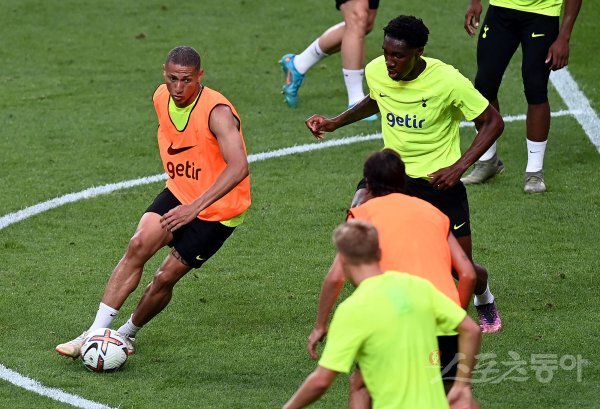 손흥민의 소속팀 토트넘이 11일 서울월드컵경기장에서 오픈 트레이닝을 가졌다. 토트넘 히샬리송이 돌파를 시도하고 있다.
