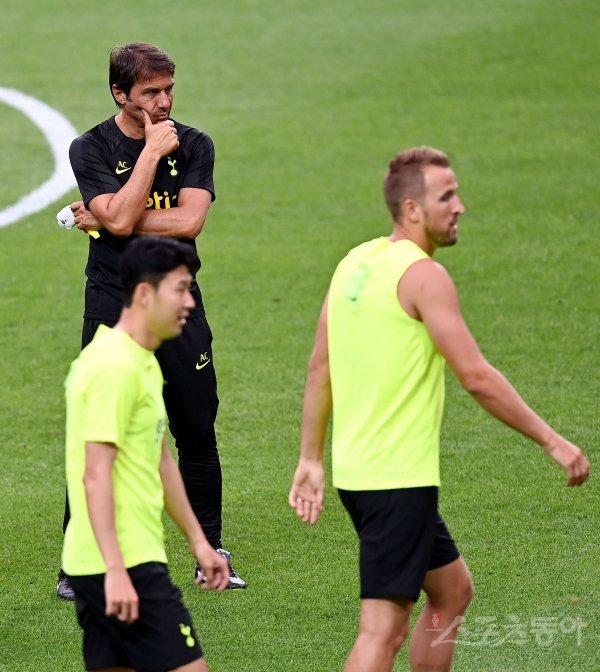 손흥민의 소속팀 토트넘이 11일 서울월드컵경기장에서 오픈 트레이닝을 가졌다. 토트넘 콘테 감독이 손흥민과 케인의 훈련을 지켜보고 있다.