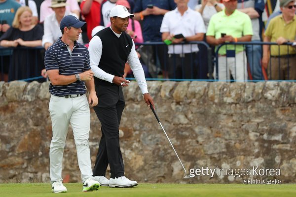 로리 매킬로이와 타이거 우즈가 함께 연습라운드를 돌고 있다. 사진=게티이미지코리아.