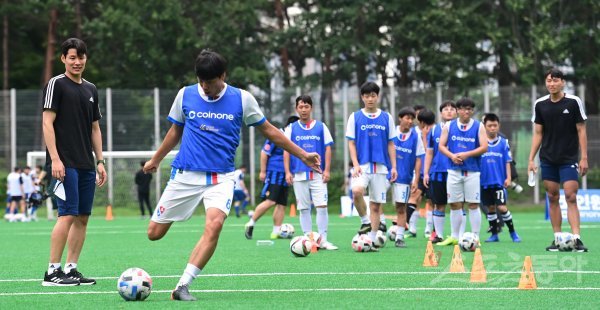 팀 K리그 박승욱이 12일 서울월드컵경기장 보조경기장에서 열린 스페셜올림픽코리아 K리그 통합축구팀 축구 클리닉에서 참가 선수들의 슈팅을 지켜보고 있다.