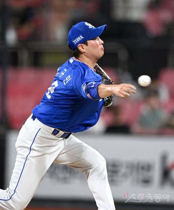 12일 수원KT위즈파크에서 ‘2022 신한은행 MY CAR KBO리그’ 삼성 라이온즈와 KT 위즈 경기가 열렸다. 교체 등판한 삼성 우규민이 역투하고 있다.