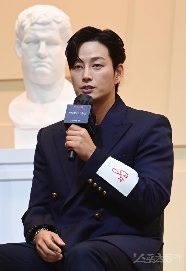 배우 이현욱이 13일 서울 중구 장충동 크레스트72에서 열린 넷플릭스 시리즈 ‘블랙의 신부’ 제작발표회에서 인사말을 하고 있다.