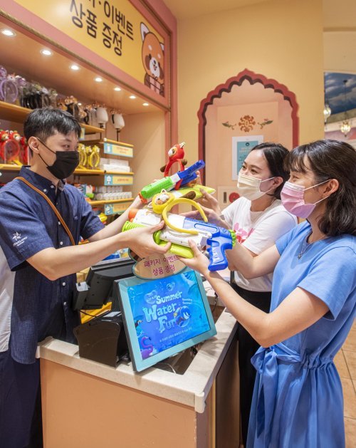 삼성물산 리조트부문이 운영하는 에버랜드는 여름축제 ‘썸머워터 펀’을 더욱 스마트하게 즐길 수 있도록 인기 MD 상품을 사전구매해 입구 매장에서 바로 찾는 ‘굿즈 픽업 서비스’를 운영한다.에버랜드 스마트 예약을 통해 이용권 구매와 함께 MD 상품을 예매할 수 있는 서비스로 축제에서 가장 인기 있는 판다 판초우의, 물총, 헤어밴드 등 13개 제품을 할인 판매한다. 스마트 예약을 통해 상품을 미리 골라 정문 앞 라시언 메모리엄에서 QR코드만 보여주면 바로 상품을 수령할 수 있다.
