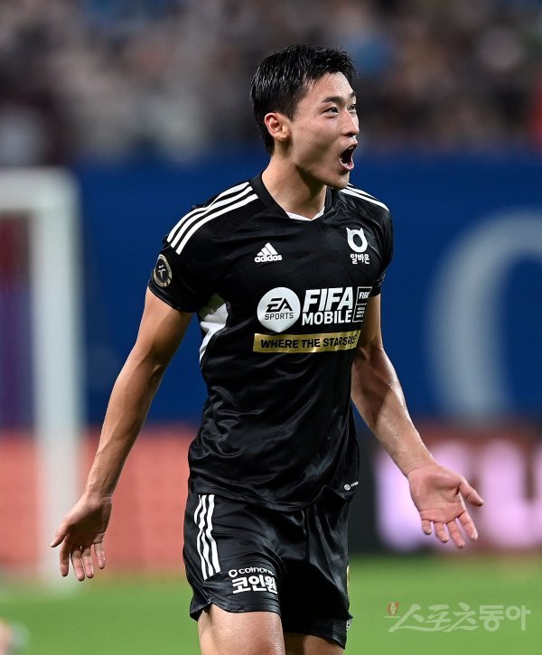 13일 서울 월드컵경기장에서 잉글랜드 프로축구 프리미어리그 ‘토트넘’과 K리그 올스타 ‘팀 K리그’의 경기가 열렸다. 팀 K리그 조규성이 골을 넣은 후 환호하고 있다. 상암 | 김민성 기자 marineboy@donga.com