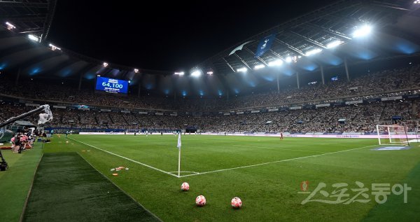 13일 서울 월드컵경기장에서 잉글랜드 프로축구 프리미어리그 ‘토트넘’과 K리그 올스타 ‘팀 K리그’의 경기가 열렸다. 64,100명의 축구팬들이 경기장을 가득 메워 응원을 펼치고 있다.