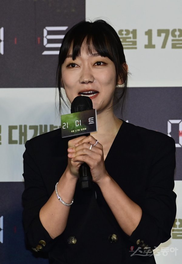 배우 박경혜가 14일 서울 광진구 자양동 롯데시네마 건대입구점에서 열린 영화 ‘리미트’ 제작보고회에서 인사말을 하고 있다.