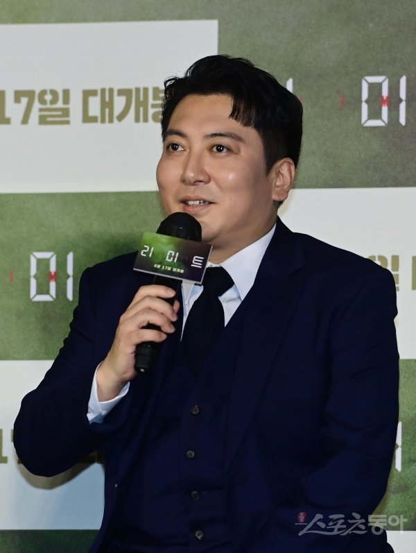 배우 박명훈이 14일 서울 광진구 자양동 롯데시네마 건대입구점에서 열린 영화 ‘리미트’ 제작보고회에서 인사말을 하고 있다.