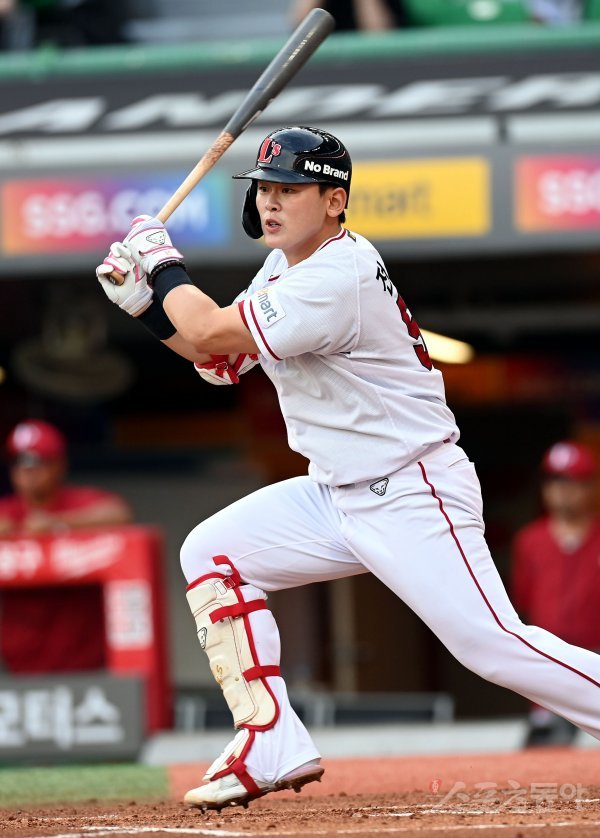 14일 인천 SSG 랜더스필드에서 ‘2022 신한은행 SOL KBO리그’ SSG 랜더스와 키움 히어로즈의 경기가 열렸다. 2회말 무사 1, 2루에서 SSG 전의산이 안타를 날리고 있다.