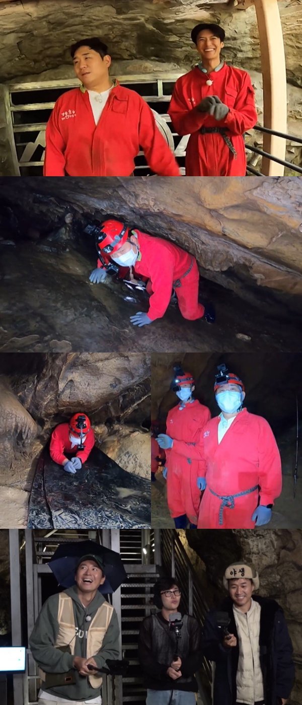 이들은 입구부터 뿜어져 나오는 서늘한 기운에 압도되는 것도 잠시, 패기 있게 동굴에 입성한다. 그러나 ‘1박 2일’에서 가장 거대한 신체를 소유한 ‘뚱뚱이’ 문세윤과 ‘길쭉이’ 나인우는 울퉁불퉁하고 험난한 코스에 몸을 제대로 가누지 못하고 고군분투한다.